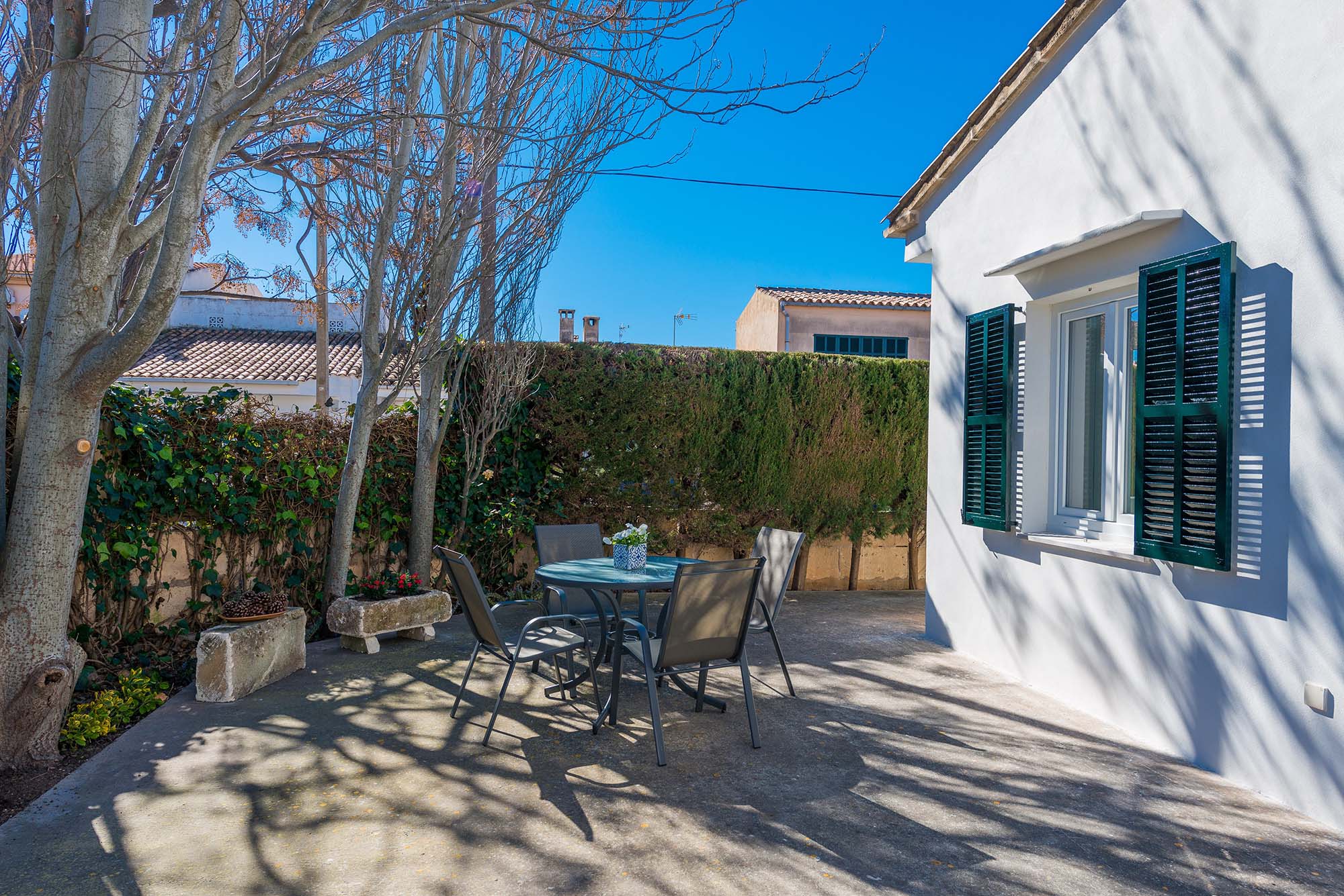 Das hübsche Haus ist nur ca. 150m vom Meer entfernt, hervorragend für ein Frühstück auf der möblierten Terrasse, mit leichter Brise vom Meer. Danach bietet sich ein Spaziergang, an der faszinierenden Felsküste an, bevor Sie den Sandstand von S’Illot erreichen. Der ist nur ca. 600m vom Haus entfernt. Nach einem langen Strandtag können Sie am Abend Köstlichkeiten auf dem Grill zubereiten, während die Kinder im Garten spielen. Das Grundstück ist umzäunt und Sie haben direkte Nachbarn.