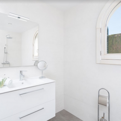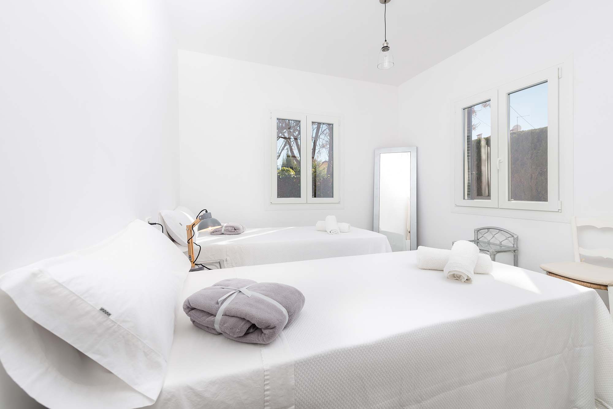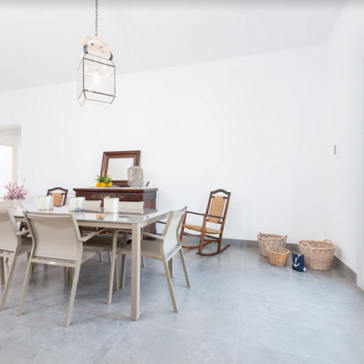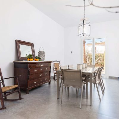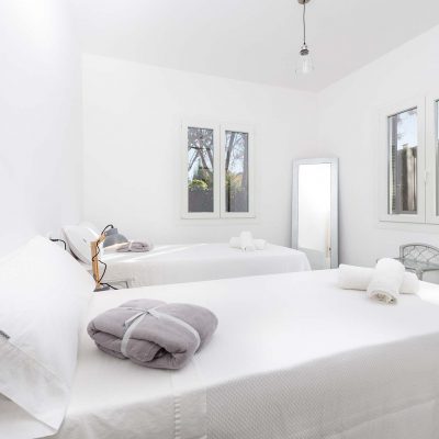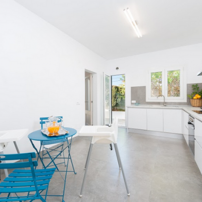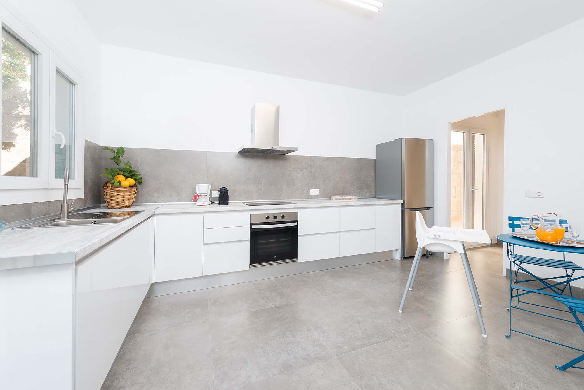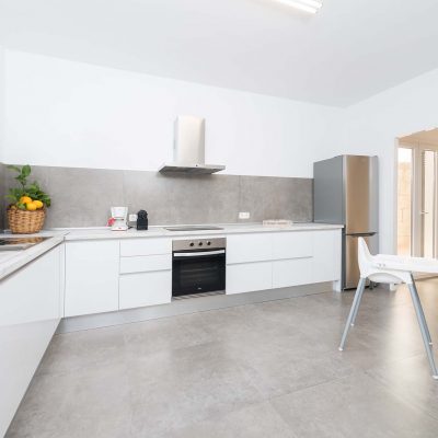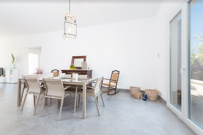 Im Inneren überrascht ein gekonnter Mix aus moderner Einrichtung mit excellent platzierten antiken Möbeln. Im geräumigen Wohn – Essbereich können Sie es sich auf dem Sofa bequem machen oder mit den Kindern spielen, bevor Sie sich zu den gemeinsamen Mahlzeiten versammeln. In der modernen Küche kochen Sie auf einem Induktionsherd und haben dafür alle großen und kleinen Helfer die Sie brauchen. Die Waschküche ist separat und beherbergt eine Waschmaschine, Bügelbrett und Bügeleisen. Es gibt zwei Duschbäder, für alle Bewohner zugänglich, und 3 Schlafzimmer mit je einem Ventilator und Schrank. Eins der Zimmer hat ein Doppelbett, die anderen sind mit je 2 Einzelbetten eingerichtet. Auf Anfrage können bis zu 2 Babybetten und Hochstühle bereitgestellt werden.