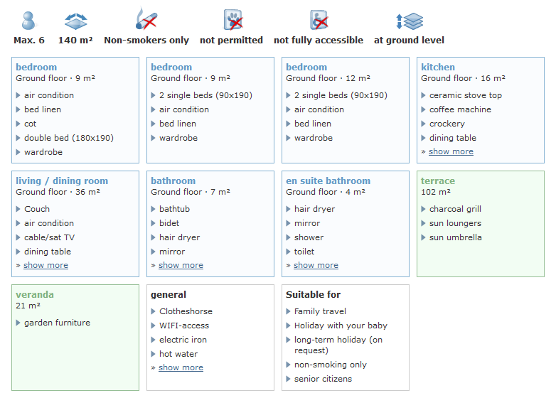 The house and the surroundings were superb, we didn’t expect such a well equipped kitchen, we could do there actually anything you could dream of during holidays. The owner provided us with fresh eggs (laid by their own hens), oranges (picked up in the garden nearby), tomatoes… we just didn’t know how to thank for his hospitality. The place is great for families with children, just a few km to shops and beaches but you need a car. The house is spacious and comfortable, the same can be said about the terrace, the pool area and the garden. Excellent holidays!